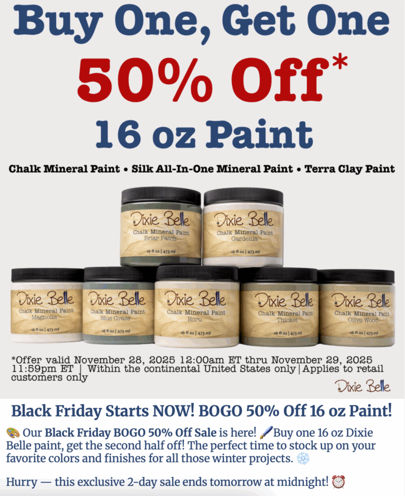 UPDATE 10:42 am – I had no idea DB was having a Black Friday sale! 🤗 You all know how much I love these paints for the ease of use, no brush marks, and gorgeous colors. Today until 12 am, they have buy one get one 50% OFF.